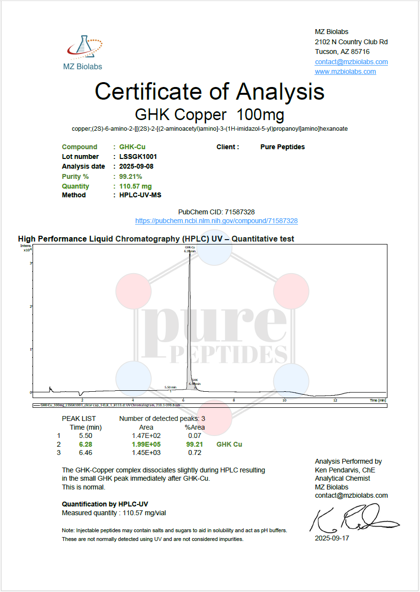 A tripeptide-copper complex studied for its cellular matrix interactions. Laboratory research shows notable antioxidant properties and protein synthesis pathway modulation.